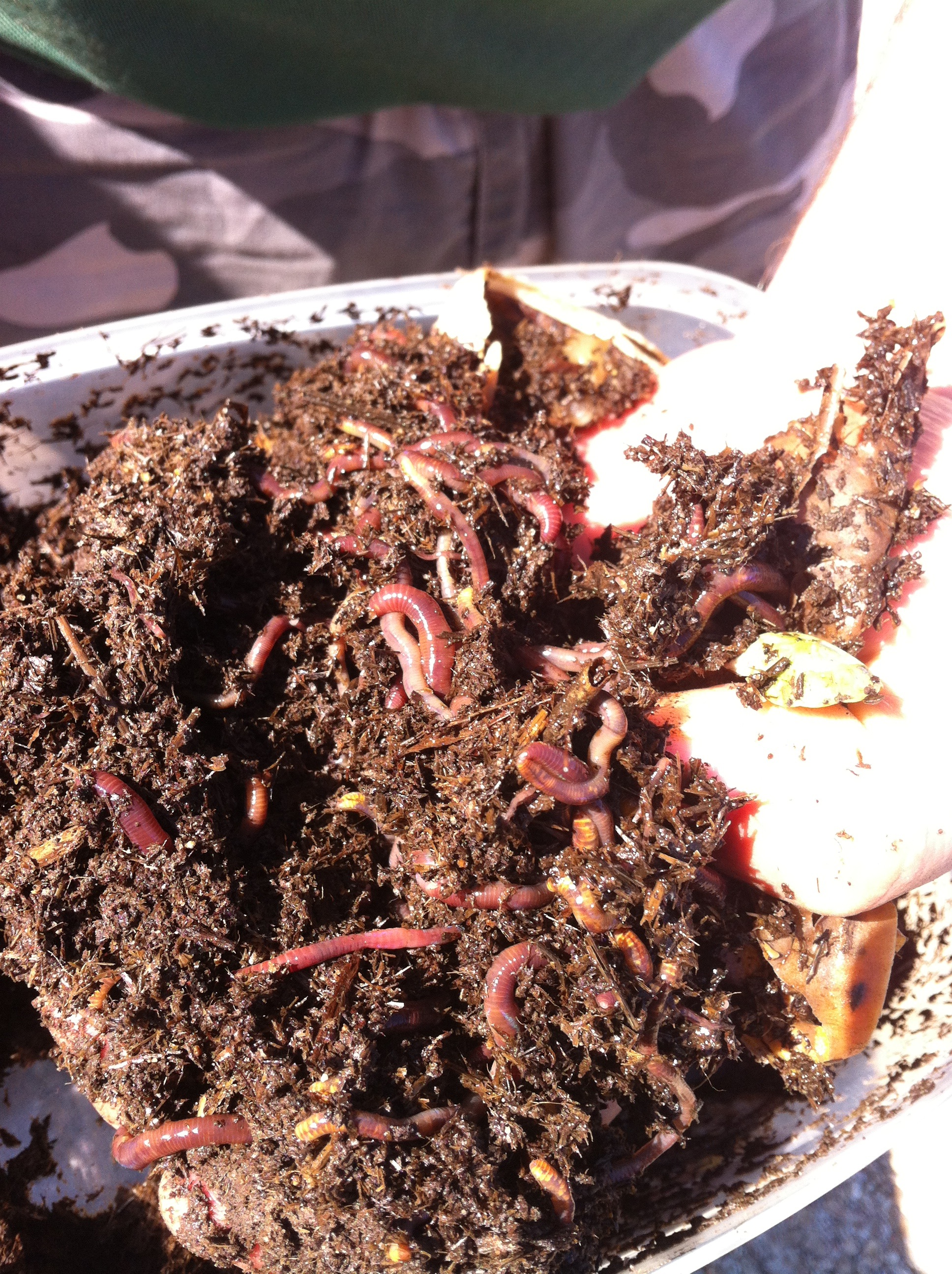 I have included a couple of pictures of one of our Jumper Starter Farms. This is designed to ship and gives you a healthy way to start and takes the guess work out of starting from scratch. We take a sample of our beds (bedding and a few hundred worms of different sizes) to give you a solid start and something you can replicate as your population grows. When you see small worms and larger ones it’s a good indicator that you have a healthy happy environment that your worms are reproducing in. Depending on your needs and what you are trying to do, you will want to experiment and introduce worms in your soil to see which methods work best for you. I would encourage you to focus on one spot and expand a handful or two of worms and bedding at a time when you see your worms growing and reproducing from there.