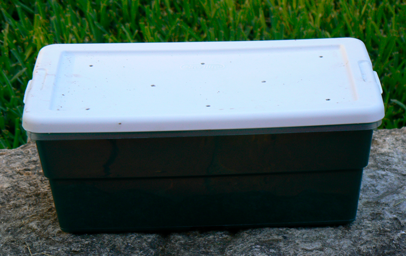 A wooden box or old coolers are a good choice and provide good insulation. A large tank or tub will have more volume and more volume will have more insulation as well.