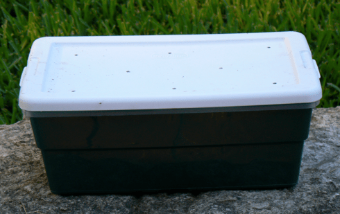 You’ll want to keep your farm in a cool, dark place, or at least out of direct sunlight.   The garage, under a sink, in a pantry, are all good spots.  Remember, that your worms will do best in temperatures from 40F – low 80sF.  In the Summer keeping your bin’s moisture level up will help keep them comfortable.  I like to see some condensation on the underside of the lid, and when I dig down a couple of inches I want it to feel like the inside of a moist brownie.  You can add moisture with a spray bottle or just a light sprinkle of water.  If the bin gets too muddy or wet just leave the lid off for a few hours, or mix in some shredded newspaper or cardboard.