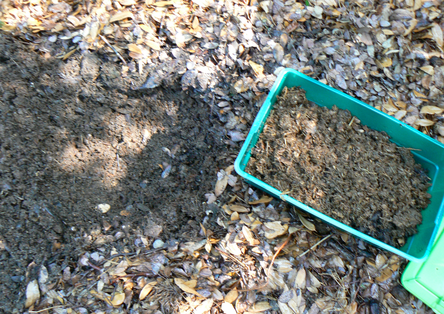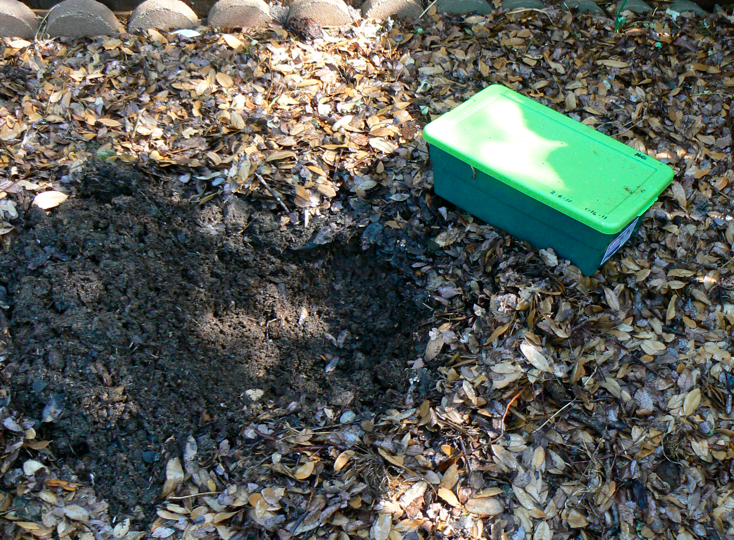 3. You will need to dig a small hole about the size and depth of the box or container of your worms and contents.